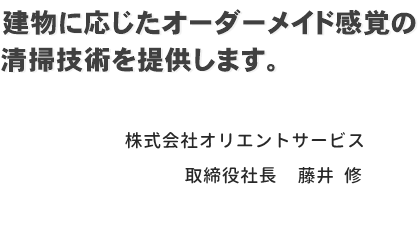 建物を単なる「箱」として扱うのではなく、それぞれの建物の状況や構造物に合わせて、持てる技術と機材を余すことなく投入し、ご利用される皆様が常に安全と安心と満足感を得られるよう、日々の業務に邁進し続けます。